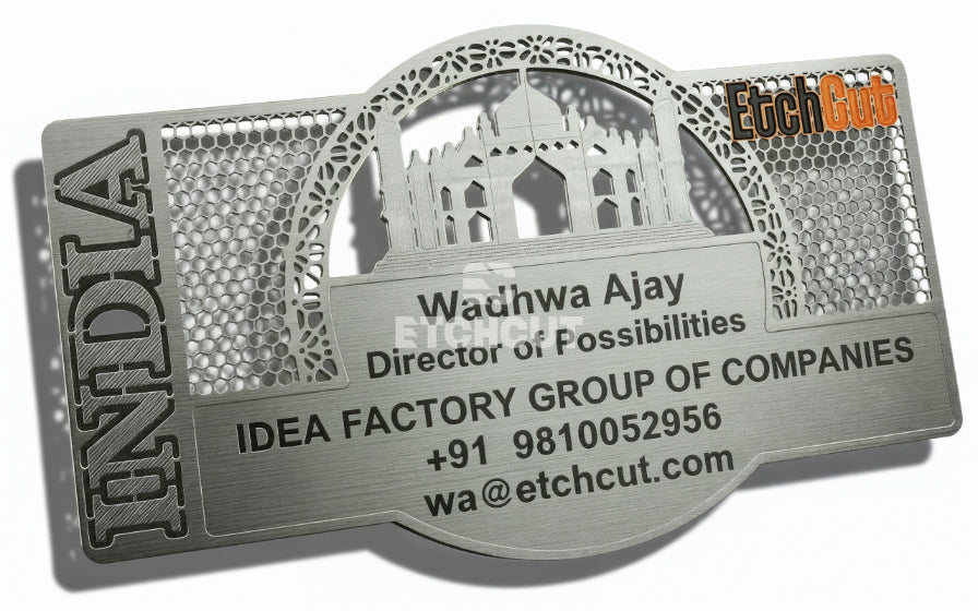 Metal business cards demand precision, clean cutouts, fine engraving, and deep etched detailing. Etchcut’s chemical etching technology enables burr-free edges, crisp lettering, and consistent results on stainless steel, brass, and copper.From small custom batches to large production runs, NanoCrafter and Nano Exposure systems ensure uniform surface quality without dependency on skilled manual labor.