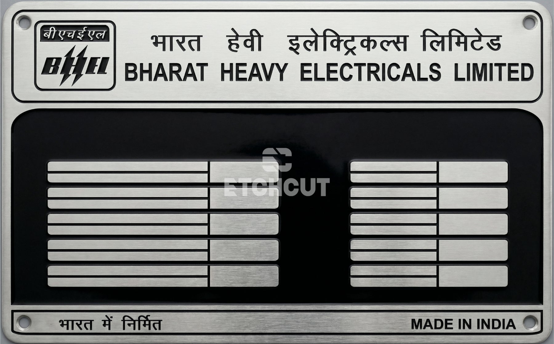 Manufacture transformer rating plates, SS316 labels, and industrial metal nameplates with deep precision and uniform finishing.